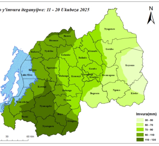 Mu gice cya kabiri cy’ukwezi k’Ukuboza 2025 (kuva taliki ya 11 kugeza taliki ya 20), mu Rwanda hateganyijwe imvura nyinshi iri hagati ya milimetero(mm) 30 na 130, ikaba iri hejuru…