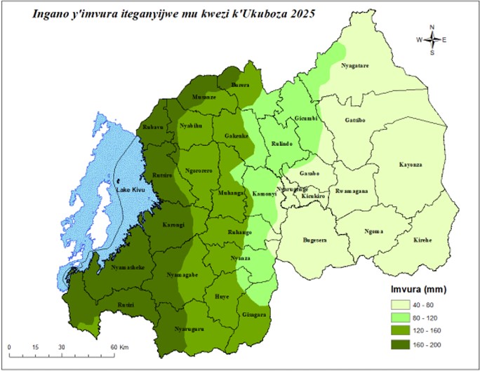 Ikigo gishinzwe Ubumenyi w’Ikirere kivuga ko mu kwezi k’Ukuboza 2025, mu Rwanda hateganyijwe imvura iri hagati ya milimetero 40 na 200, ikaba iri hasi gato y’ikigero cy’impuzandengo y’imvura isanzwe igwa mu kwezi k’Ukuboza(imvura isanzwe igwa mu mezi y’Ukuboza iri hagati ya milimetero 60 na 230).